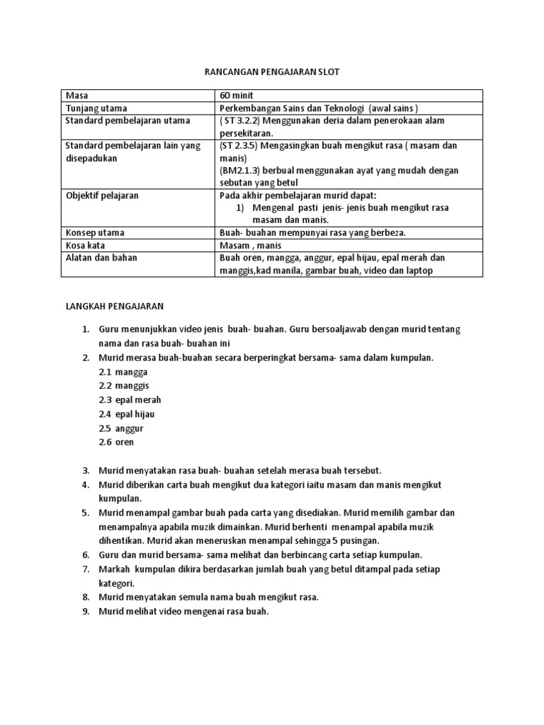 Rancangan Pengajaran Slot Tema Buah Pdf